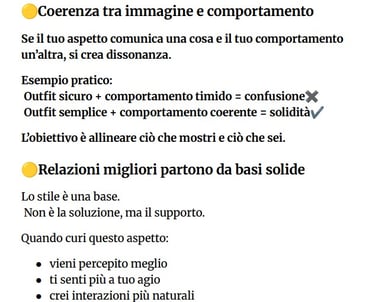 Imparerai a scegliere capi che ti valorizzano, a comunicare più sicurezza e a presentarti al meglio in ogni contesto: lavoro, relazioni, vita quotidiana.