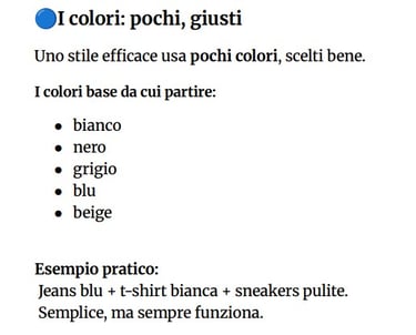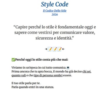 All’interno troverai un metodo semplice e pratico per costruire uno stile pulito, coerente e sicuro, senza sprechi di tempo né acquisti inutili.