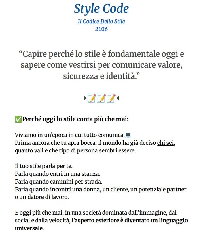 Questa guida è il primo passo per smettere di vestirti senza una direzione e iniziare a presentarti al mondo con coerenza, sicurezza e identità.
